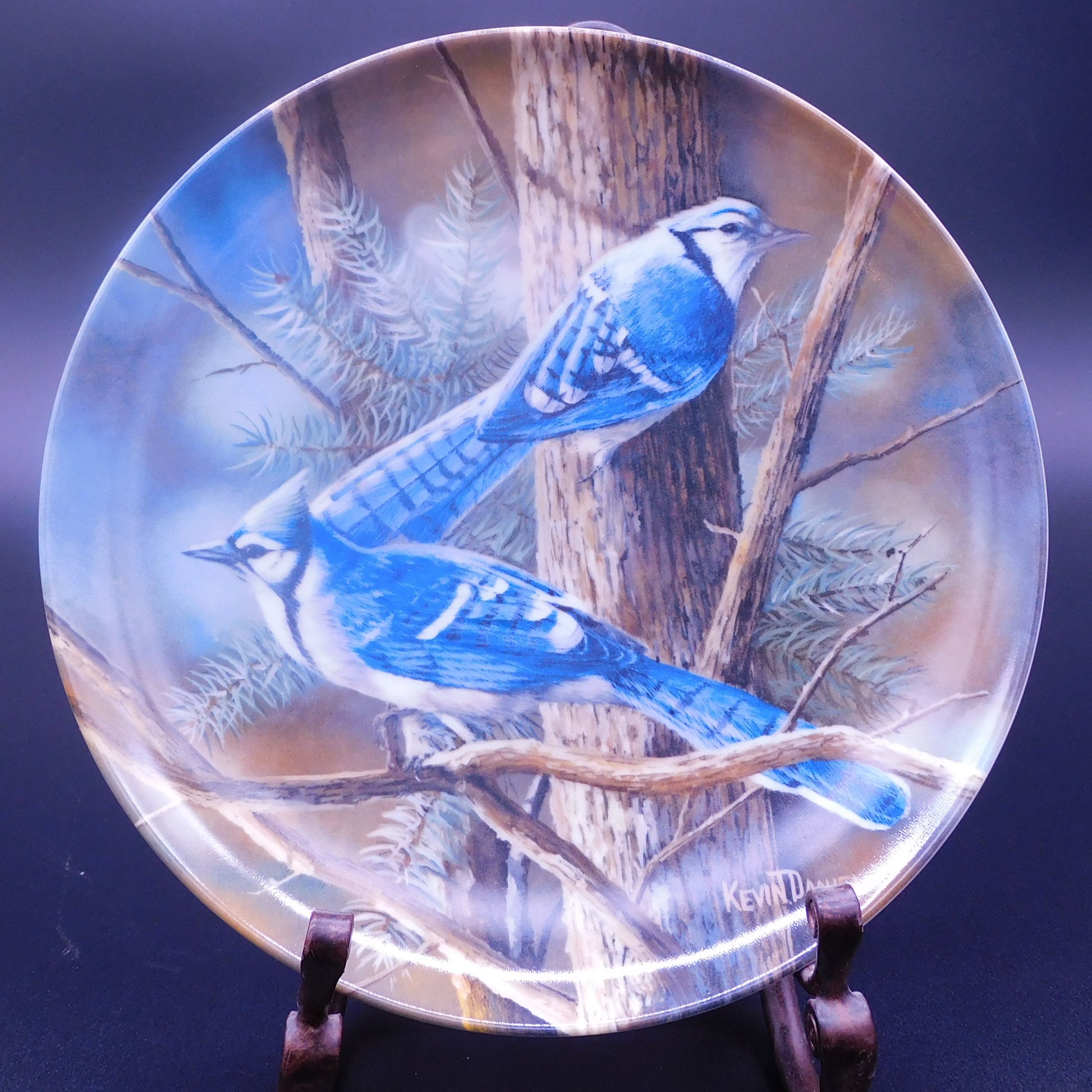 Vintage Edwin Knowles Fine China Co 'The Blue Jay' Collectible Plate - Artist Kevin Daniel -FREE SHIPPING (7066)